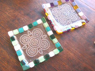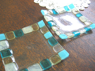 フュージングレギュラーコース(基礎科)のカリキュラム2番、フュージングガラスで作る小皿です。