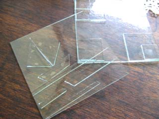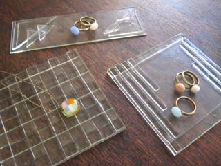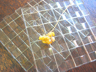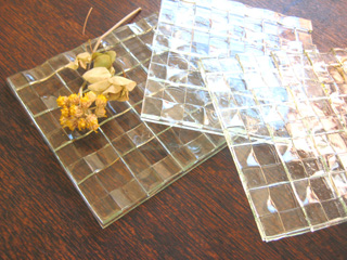 ガラスをカットして、透明のトレイを作ります。このトレイはジュエリートレイ、キャンドル置き、コースター、お香置きなどに使えます。